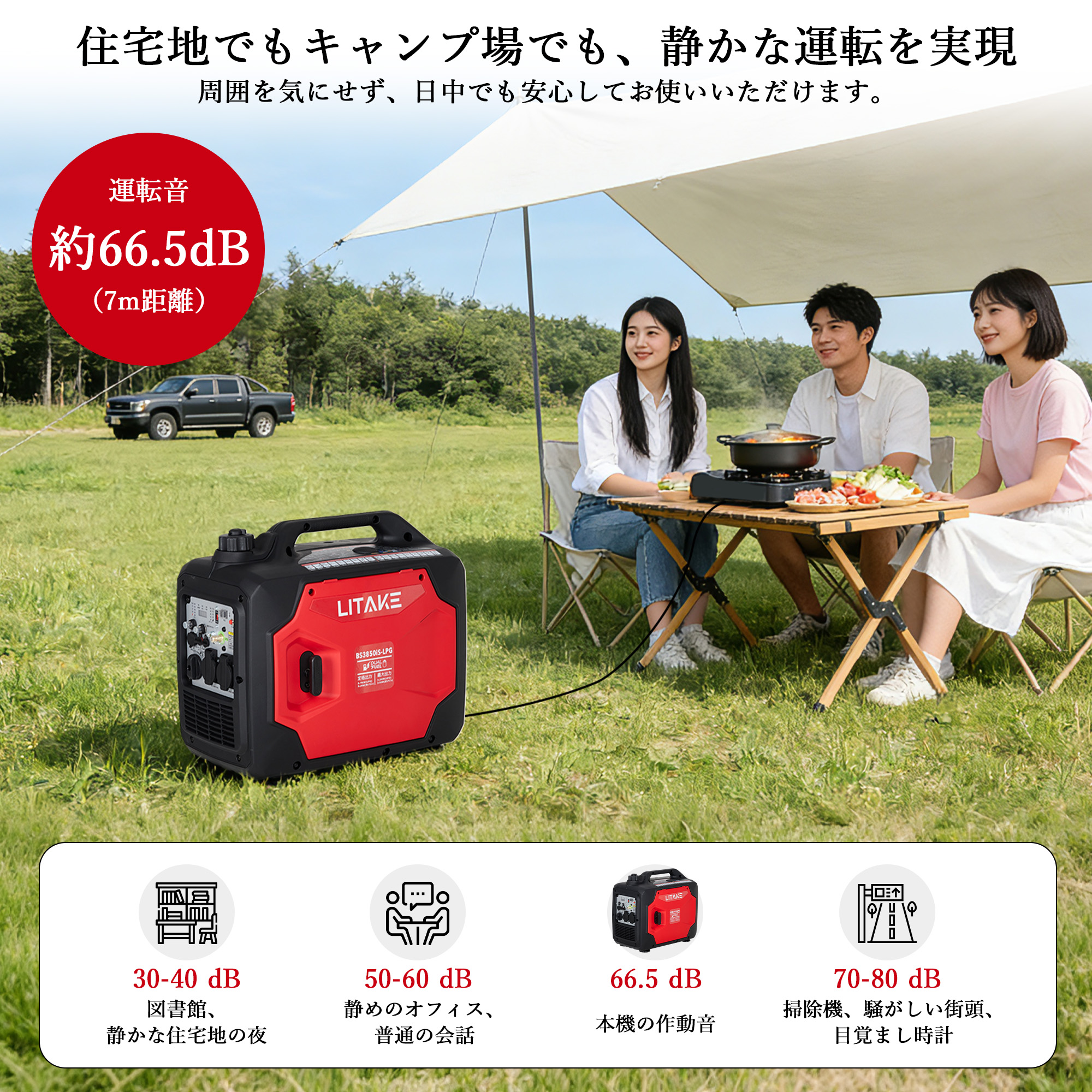 インバーター発電機 最大3500W高出力 防音型 正弦波 ガソリン LPGガス両用発電機 定格出力3.1kVA 並列運転 50Hz/60Hz切替 過負荷保護 ポータブル発電機 家庭用 アウトドア キャンプ キッチンカー イベント 建設作業 防災